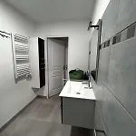 The apartment includes a full kitchen where guests can cook and enjoy homemade meals.